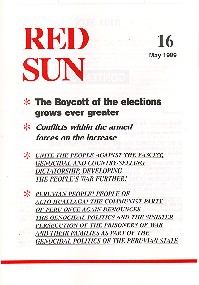 Red Sun is newly appearing again after three years of hard and fierce struggle. Today, despite the fact that the situation is still complex and difficult, we have been able to overcome the opposition. This opposition is nothing more than positions which converge with the ROL (the revisionist and capitulationist Right Opportunist Line). The non-publication of Red Sun along with the problems presented in the fulfillment of the tasks of the MPP (to wit: support the People's War in Peru; assist in the constitution, reconstitution or development of Communist Parties; and serve the World Proletarian Revolution, and within this the RIM), have to do with problems linked to the struggle. This opposition to the fulfillment of the tasks of the MPP are forms of convergence with the ROL to different degrees. For this reason we emphasize that we should leave aside petty struggles and center on the defense of the Basis of Party Unity, putting strategic matters ahead of the daily problems which obscure. In this way a very important victory for the Party and Chairman Gonzalo begins to form. The unmistakable proof of this is that capitulation and splitting begins to be ward off, which shows that in general, far from centering on individual interests, almost all are for moving forward and for the fulfilling of the tasks which the Party has entrusted to the MPP. The determining factor of this victory for Chairman Gonzalo, in reference to the international work, has been, is and shall be the advance of the People's War, which currently finds itself totally resolving the overcoming of the bend in the road. The current situation defined by the Party is a situation in which "the winds blow in our favor." It was Chairman Gonzalo himself in his speech from 1992 who said that his capture was nothing more than a bend in the road, a bend in the road before which he himself, at that moment, gave the directive to strengthen the forces to continue fulfilling our tasks and reach our goal: Victory. The key question has been, is and shall continue to be the defense of the Great Leadership and Basis of Party Unity, and the principal thing is to continue forward and continue developing the People's War. |